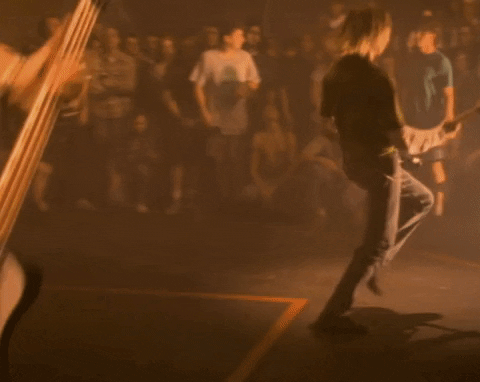 Kurt Cobain performing Nirvana's most popular anti-establishment anthem—Smells Like Teen Spirit